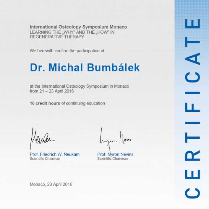 | Člen EAO (European Association for Osseointegration) |